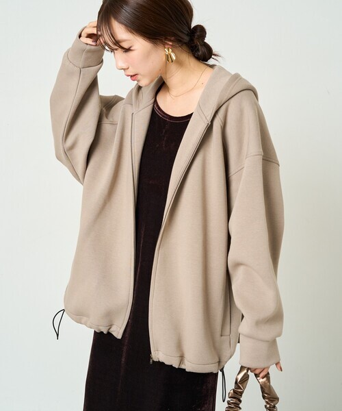 - 「FREAK'S STORE」 ジップアップパーカー フリ- ベージュ レディース