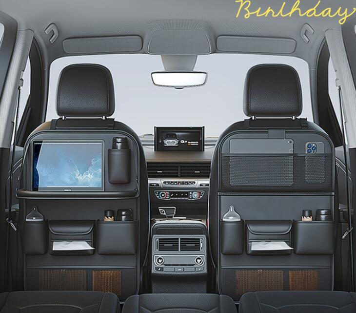 - 新作シートバックポケット テーブル機能付 車 車内 収納 ポケットドリンク ホルダー ティッシュ テーブル 大容量 車用シートバックポケット
