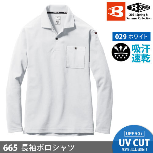 - バートル 【665】長袖ポロシャツ ■LLサイズ■ ホワイト色 ※ネコポス(ポスト投函)で発送