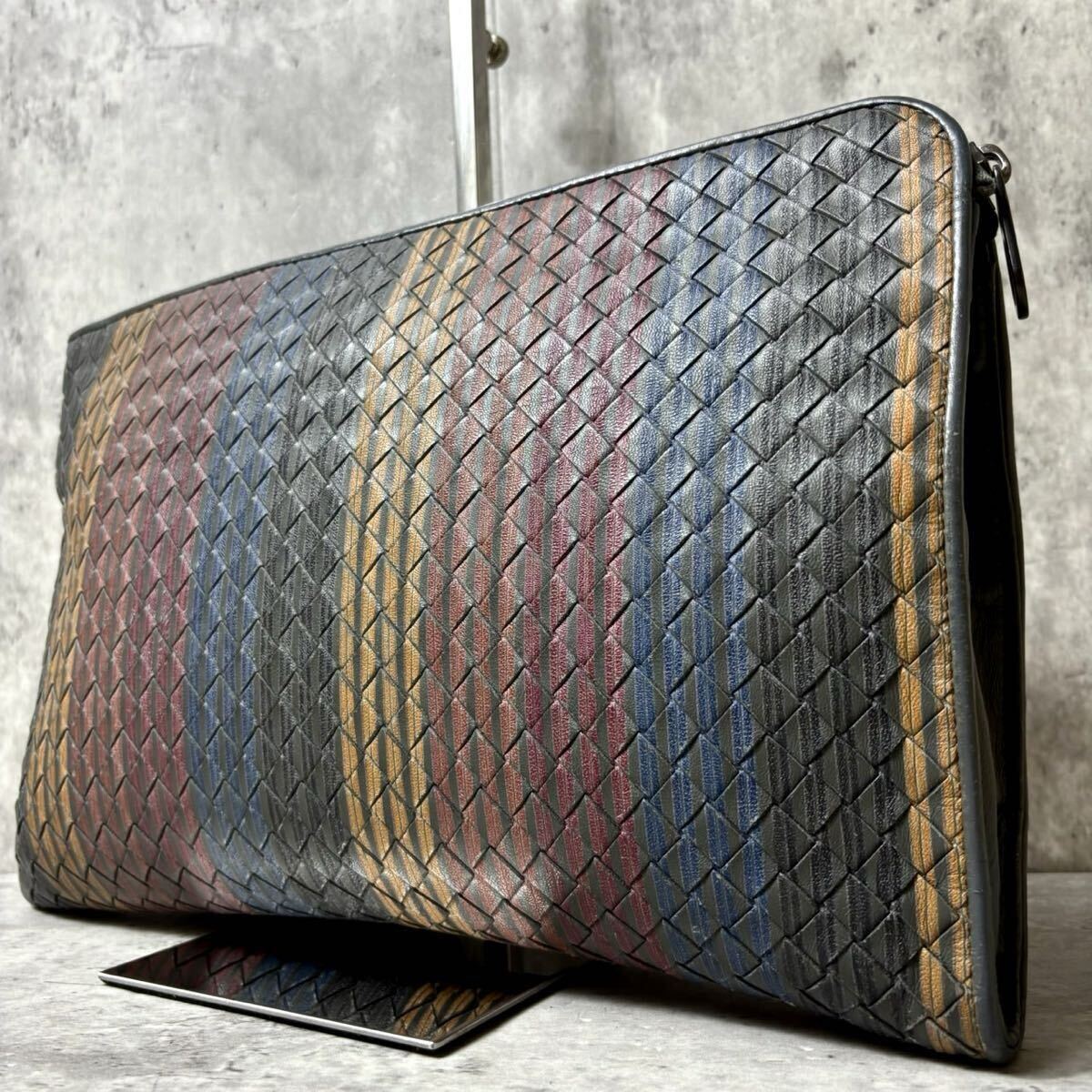- 極美品/マルチカラー●BOTTEGA VENETA ボッテガヴェネタ クラッチバッグ イントレチャート レザー 本革 セカンドバッグ ビジネス メンズ