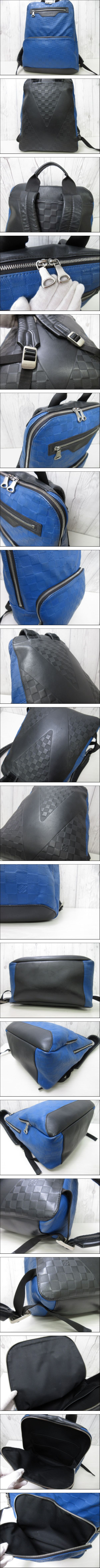 > 極美品 LOUIS VUITTON ルイヴィトン ダミエアンフィニ アベニュー バックパック リュックサック バッグ N41046 レザー青 A4可 メンズ 91681