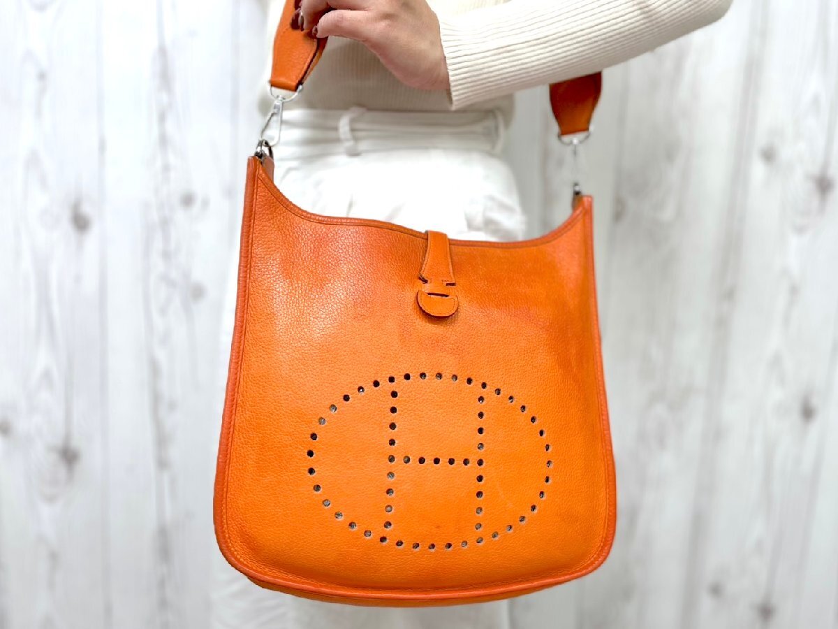 - 極美品 HERMES エルメス エヴリン エブリン ショルダーバッグ バッグ レザー×キャンバス オレンジ 91649