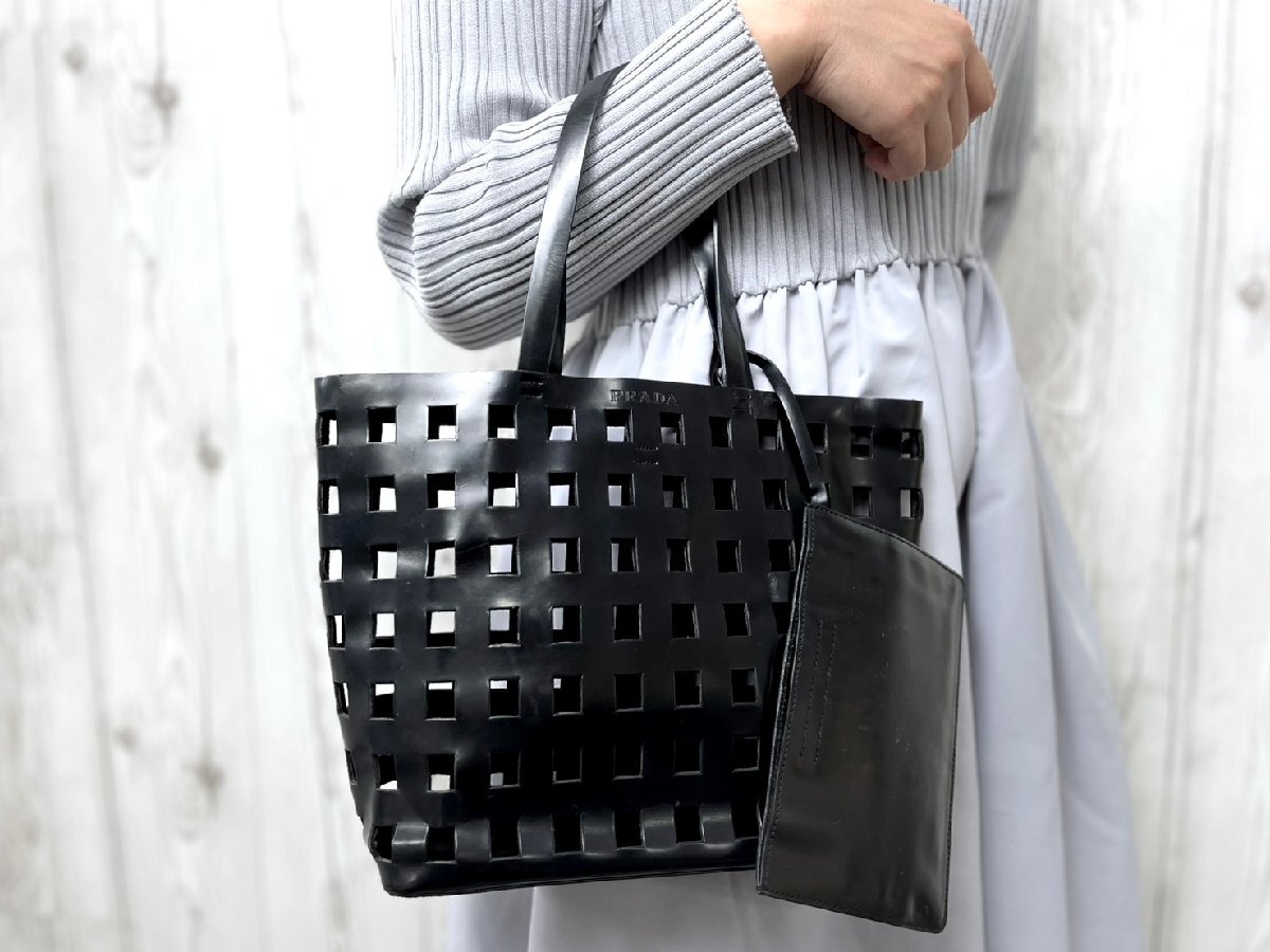 > 極美品 PRADA プラダ ポーチ付 ハンドバッグ バッグ レザー 黒 91756