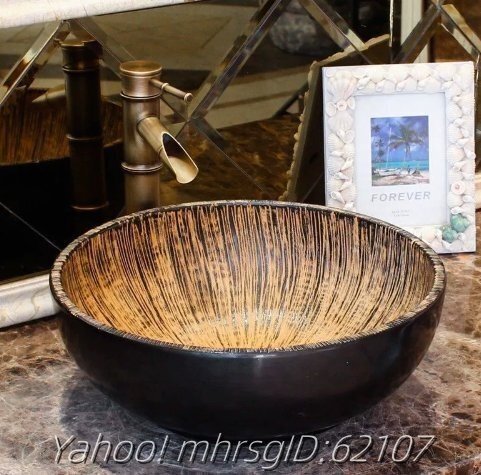 - 陶器台上盆単盆復古円形手洗い器洗面所洗面器芸術洗面器家庭用