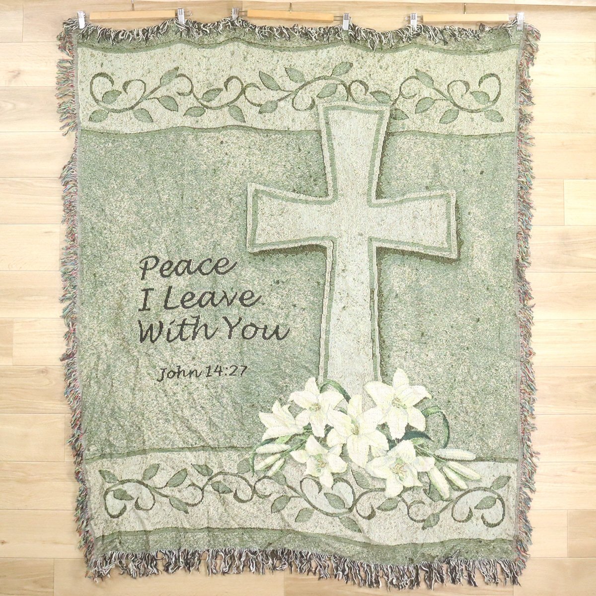 > A2-15 I/O10.8-6 キリスト教 聖書 メッセージ 十字架 リーフ柄 花柄 ラグ マット カーペット ブランケット タペストリー