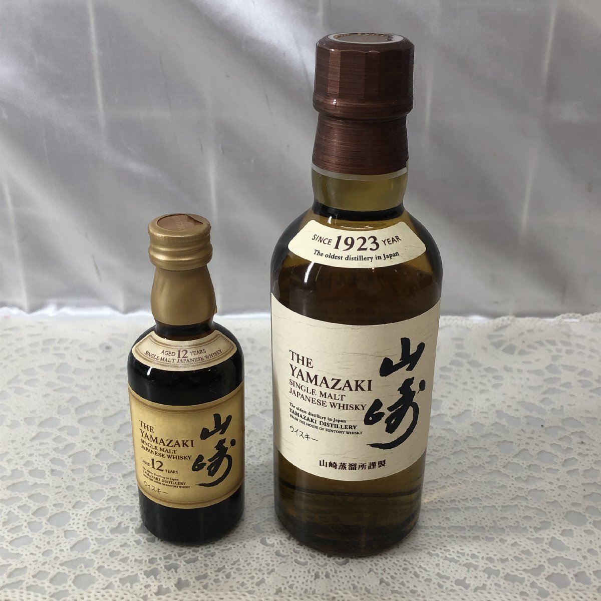 - 【2本セット/お酒/未開栓/KU】サントリー 山崎(180ml) +山崎12年(50ml)ミニボトル シングルモルト IS1109/001