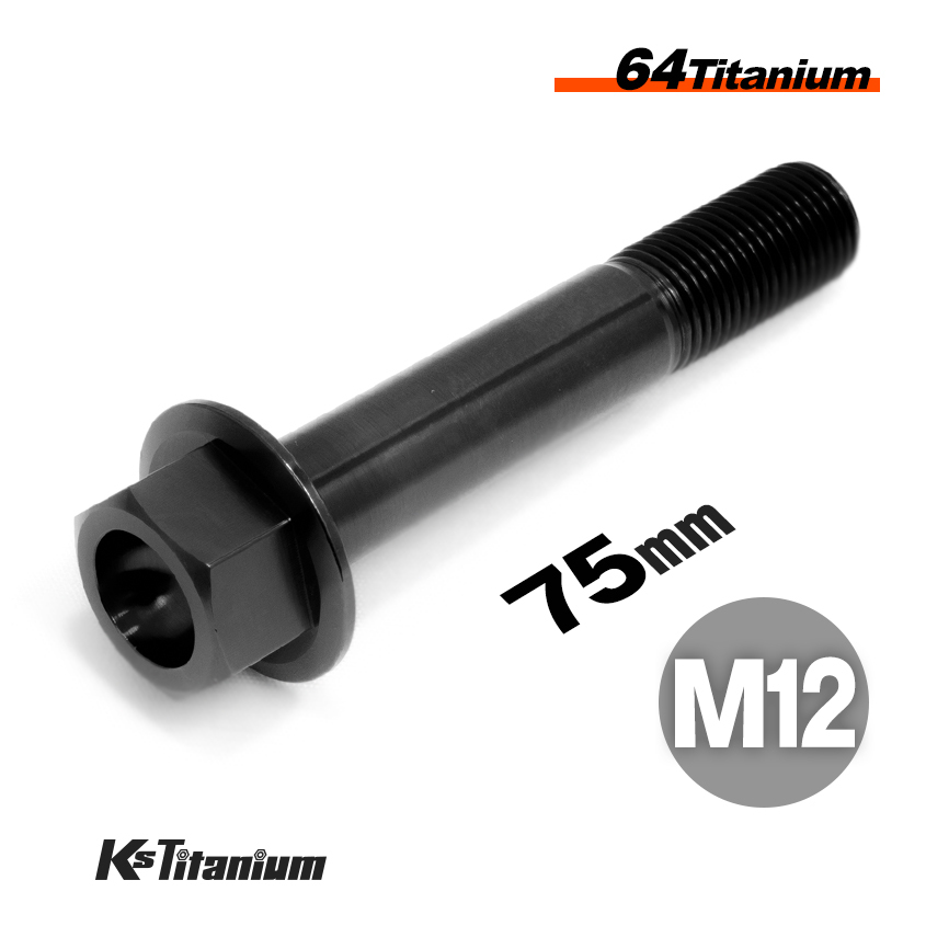> チタンボルト M12×75 P1.25 ブラック 1本売り 64チタン フランジボルト スレッド 25mm バイク レストア パーツ