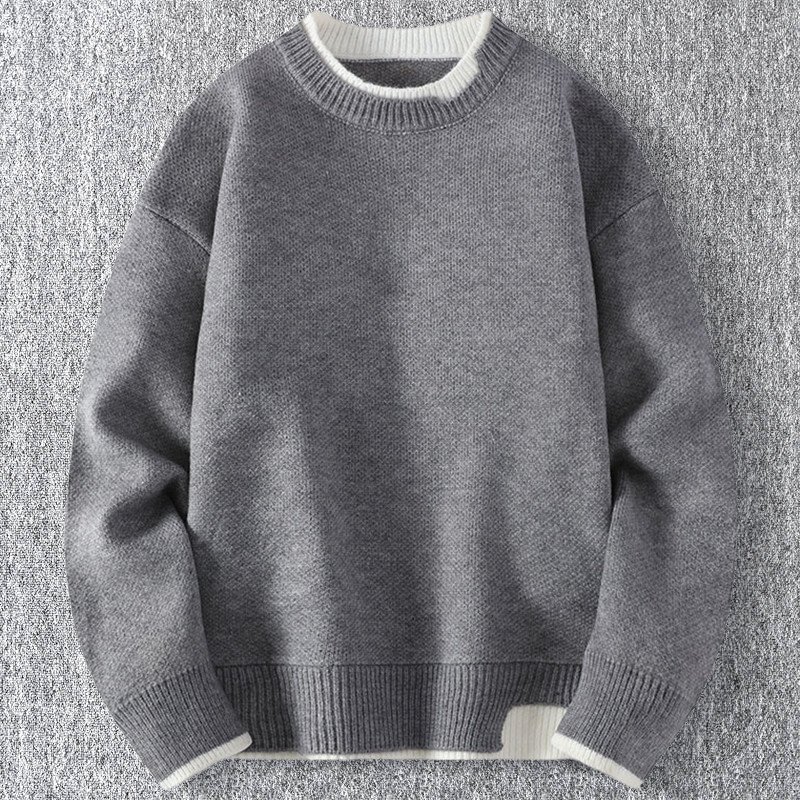- 新品 DCKMANY ウール混 ニットセーター メンズ 秋冬 クルーネック バイカラー 配色 厚手 暖かい 長袖 プルオーバー トップス 灰 T5194-M