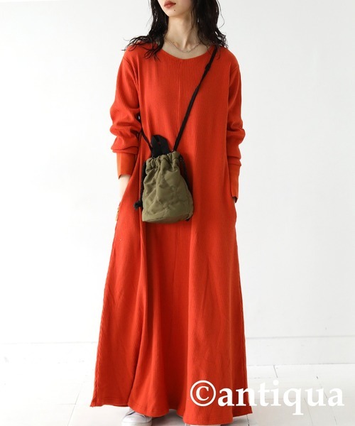 - 「antiqua」 長袖ワンピース FREE オレンジ レディース