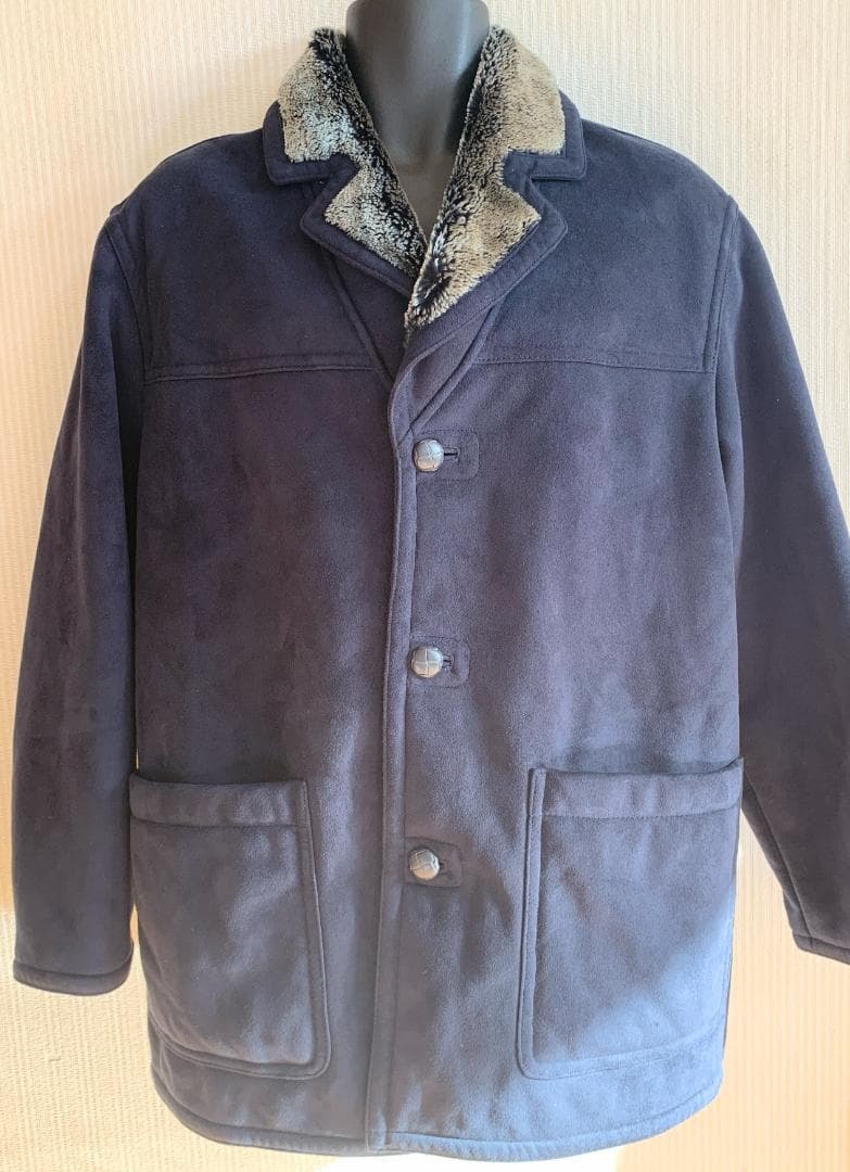 - 古着美品 ムートンジャケット ネイビー スエード風 裏総ファー襟 M メンズ