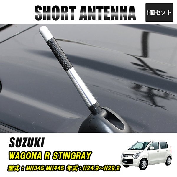 - ワゴンRスティングレー ショートアンテナ 車 ラジオ カーナビ ステレオ 好感度 ユーロ ヘリカルショートアンテナ 12cm 銀 カーボン調