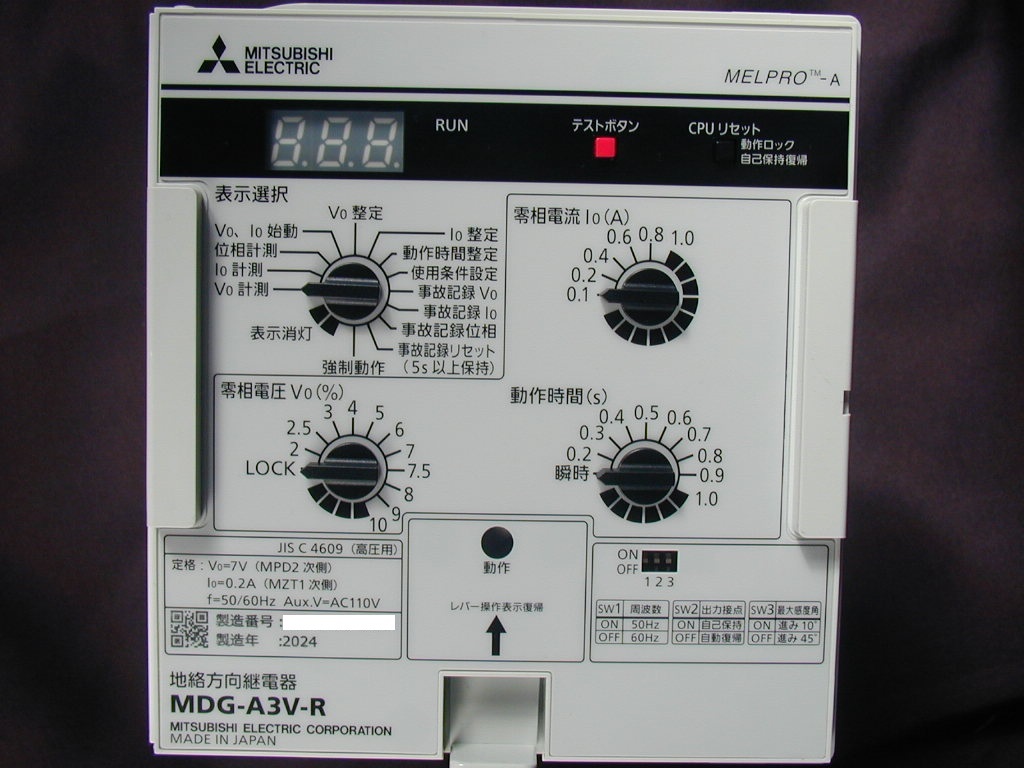 > 【ジャンク】MITSUBISHI 三菱電機 MDG-A3V-R 地絡方向継電器