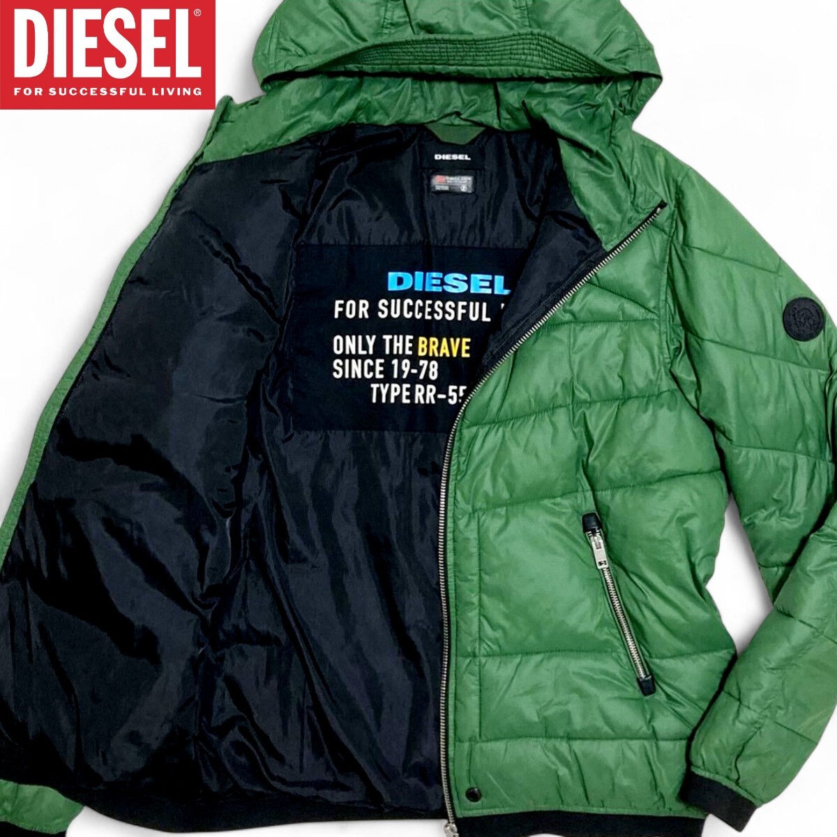 - 美品●XL相当 ディーゼル ダウンジャケット メンズ 裏地ロゴ 3M THINSULATE 肩ラバーワッペン DIESEL 中綿 ジップアップ ブルゾン フード