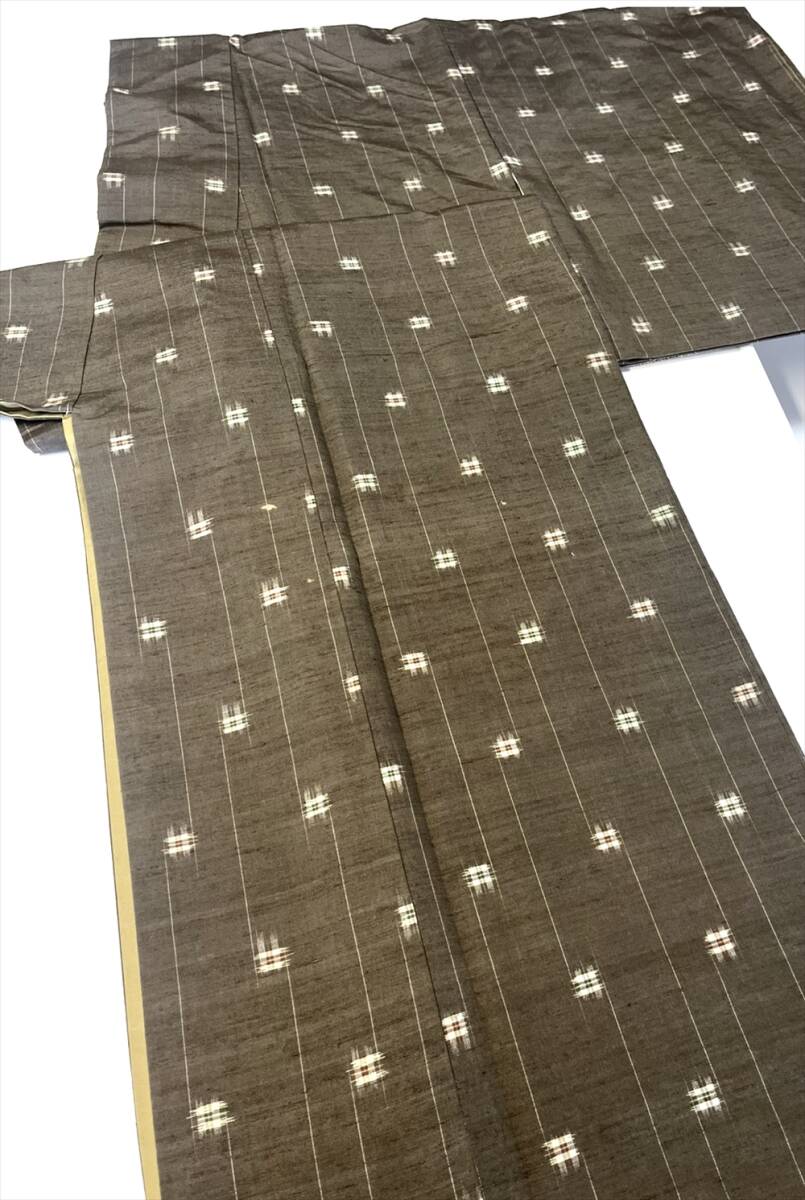 > 花とら●リサイクル着物 紬 絣 薄茶 着用可能 リメイク 素材 細工用 251105