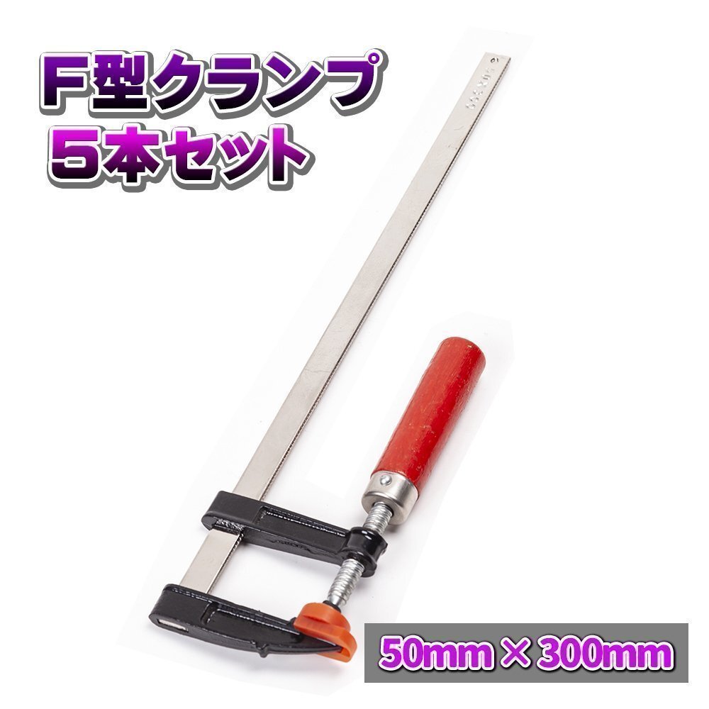 > F型 クランプ 50 mm × 300 mm 5本 セット C型 L型 万力 グリップ ロック プライヤー 工具 DIY