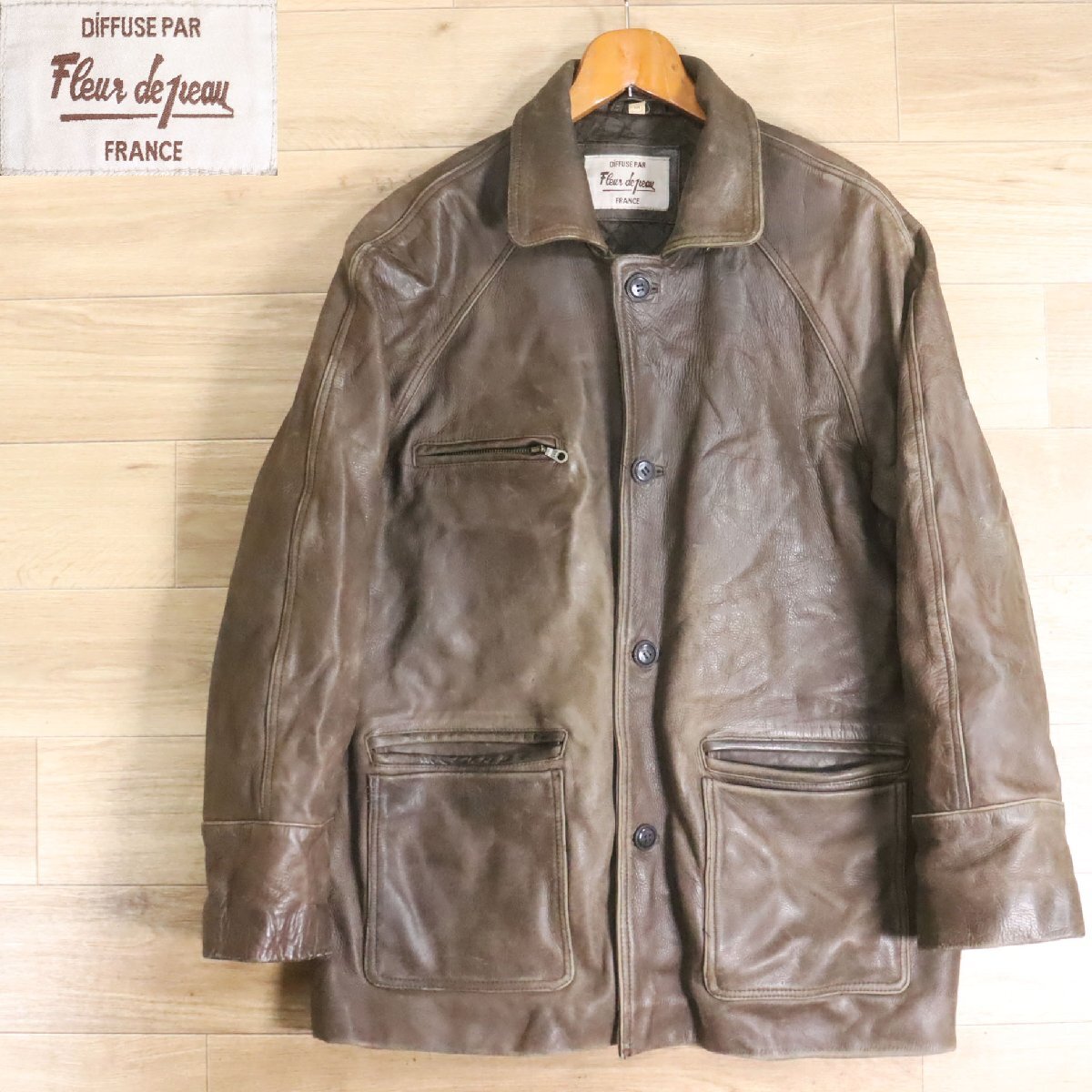 > F8S/Y6.16-1 ユーロ古着 fleur de peau レザージャケット 本革 レザーカーコート 革ジャン 皮ジャン メンズ M ヴィンテージ