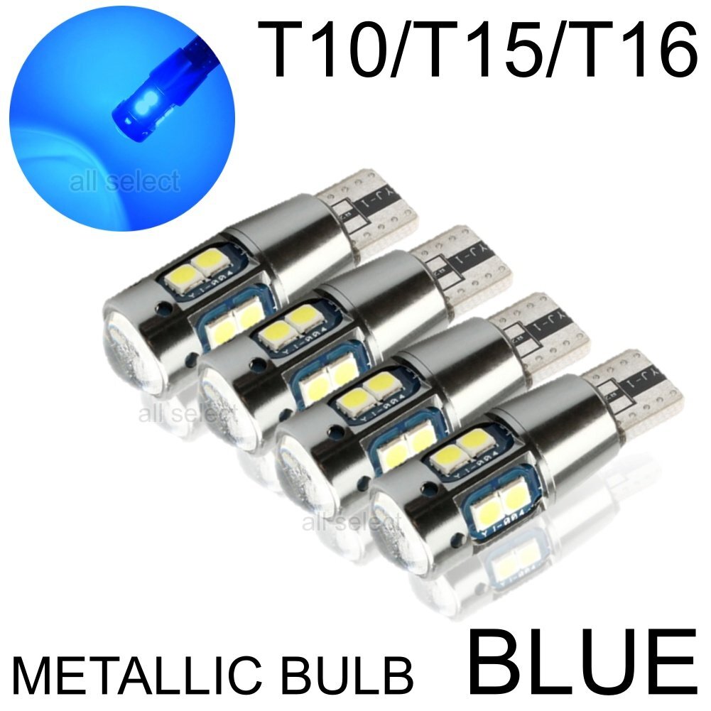 - ブルー 超爆光 T10/T15/T16 LED ポジション バックランプ LEDバルブ 無極性 キャンセラー 4個