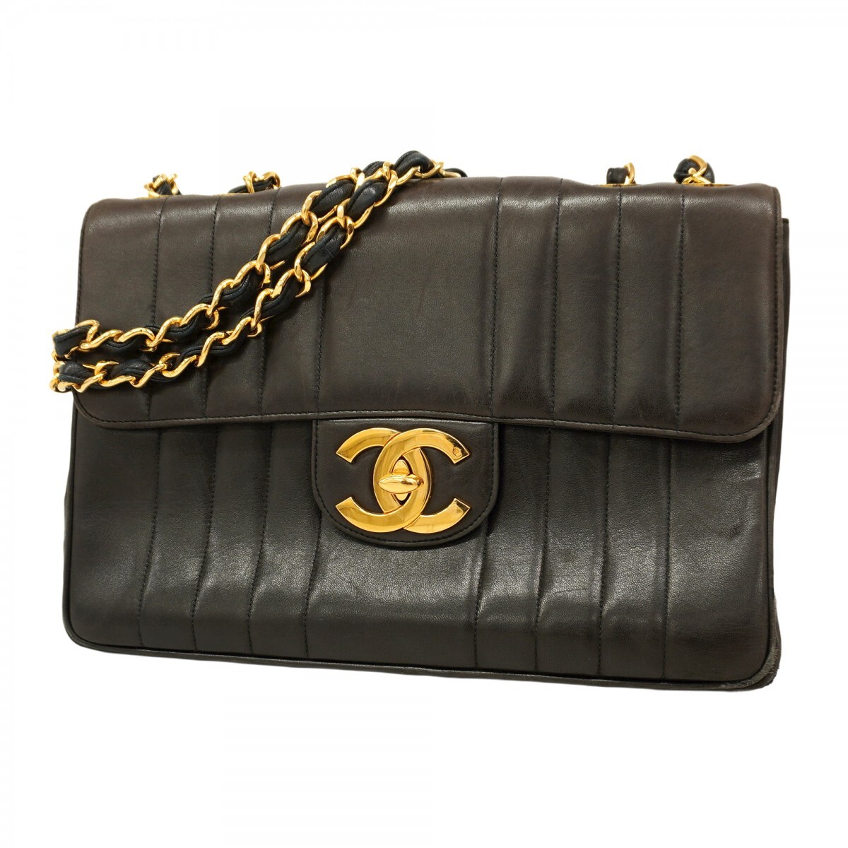 > 【5ob1023-h】シャネル ショルダーバッグ マドモアゼル Wチェーン ラムスキン ブラック ゴールド金具【中古】レディース