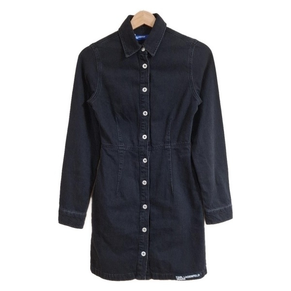 - カールラガーフェルド KARL LAGERFELD サイズX-S - 黒 レディース レギュラーカラー/長袖/ミニ/jeans ワンピース