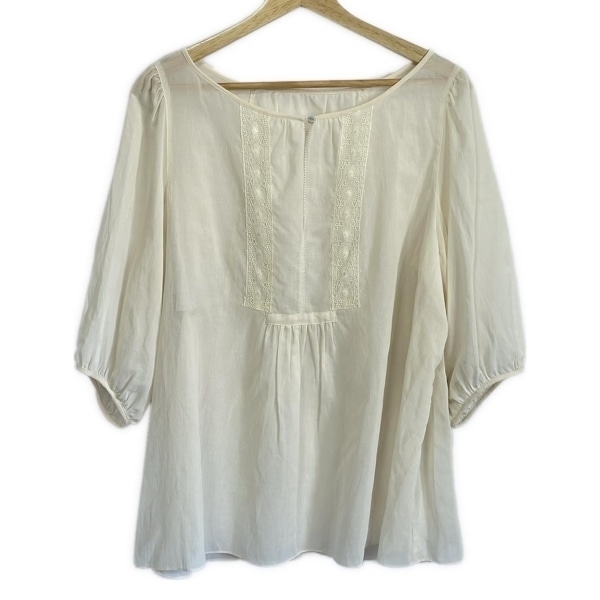 > ニジュウサンク 23区 チュニック サイズ46 XL - アイボリー レディース クルーネック/七分袖/レース/シースルー 美品 ワンピース