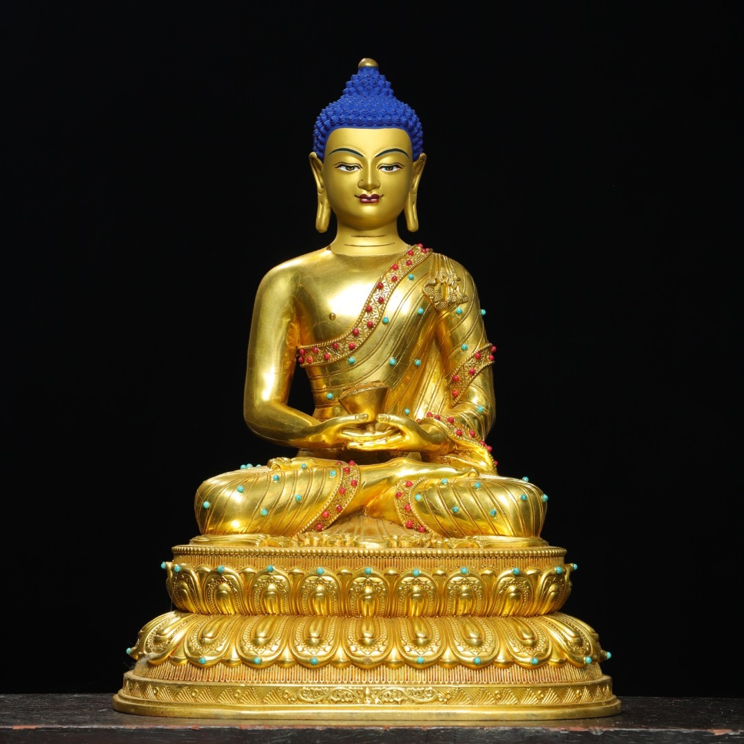 - 旧蔵 古銅彫 塗金 描彩 釋迦牟尼 佛像 古擺件 古置物 中国古玩 骨董品 時代物 稀少唐物
