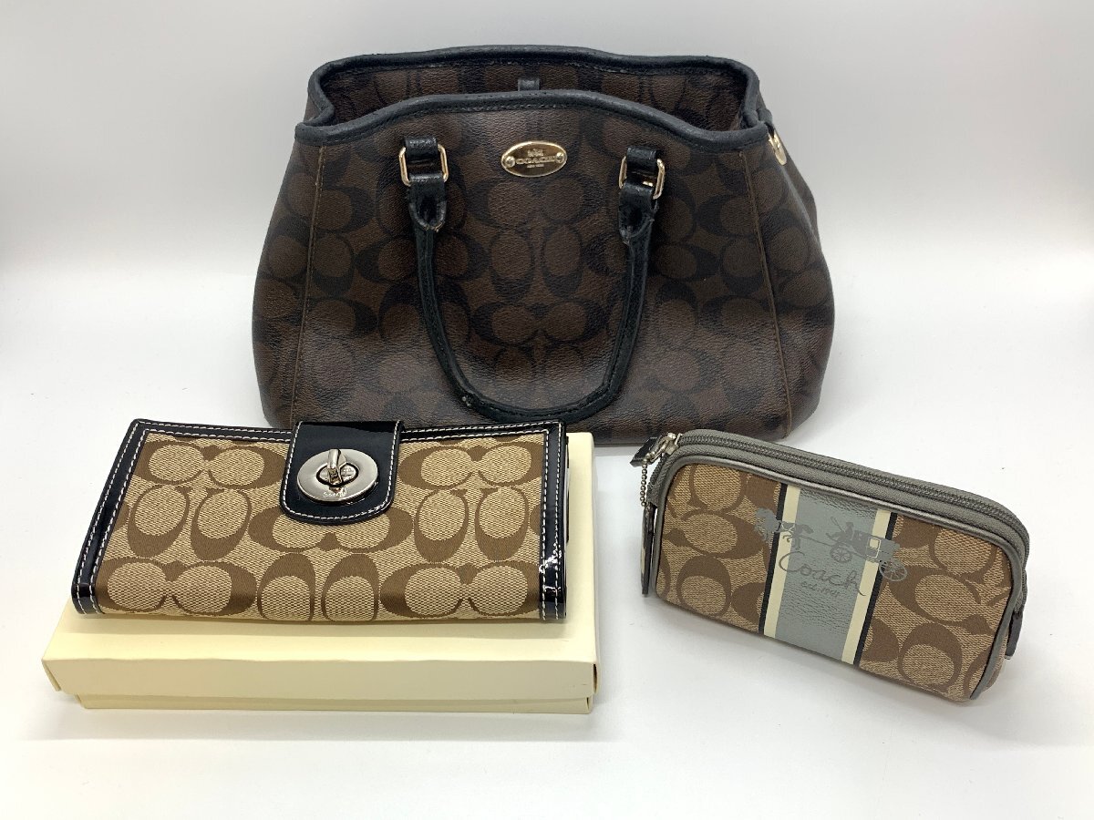 > COACH コーチ 3点セット まとめ ハンドバッグ ショルダーバッグ 二つ折り ターンロック 長財布 ポーチ ☆良品☆[73-1111-2E6]