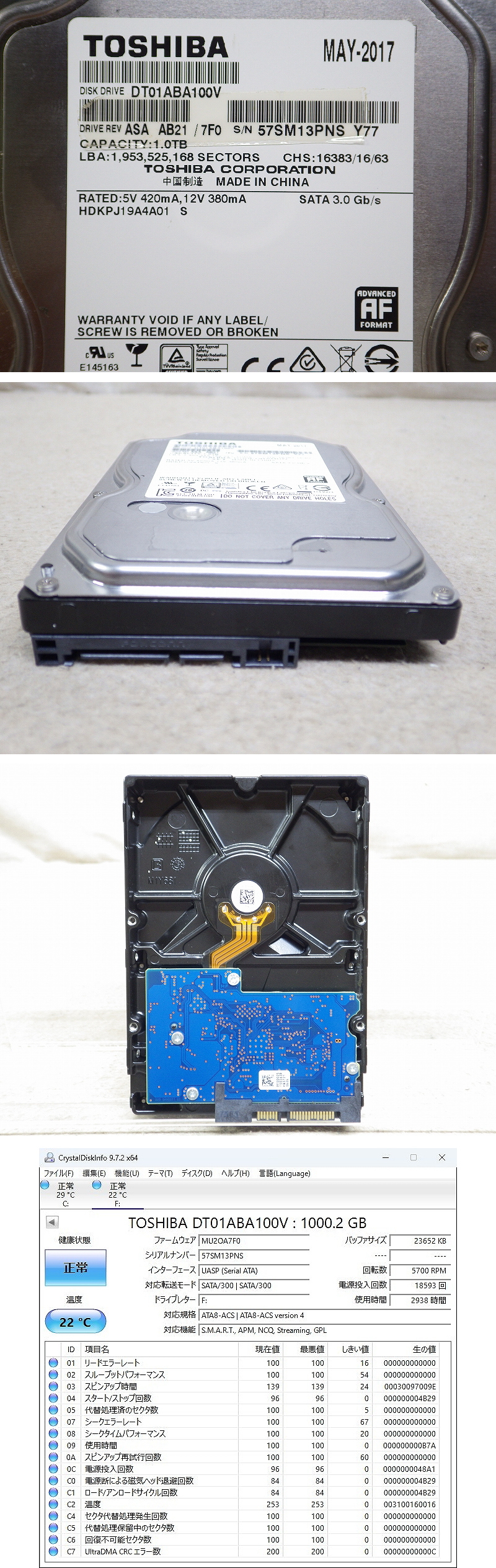 - Kネま2135 東芝/TOSHIBA SATA 3.5インチ 内蔵HDD 1TB DT01ABA100V パソコン周辺機器 PCパーツ ハードディスク