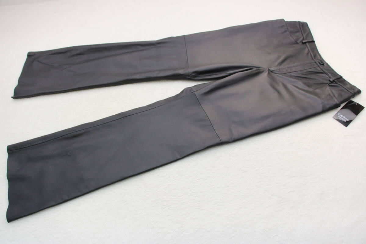 - 5968 新品タグ付き 高級羊革レザーパンツ ブラック15号