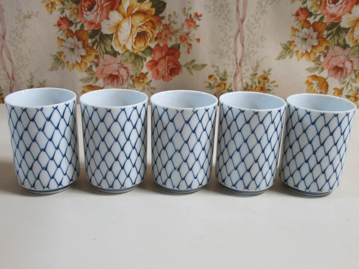 - R7 11★【染付網目文様】 ゆのみ/湯飲み 5個セット