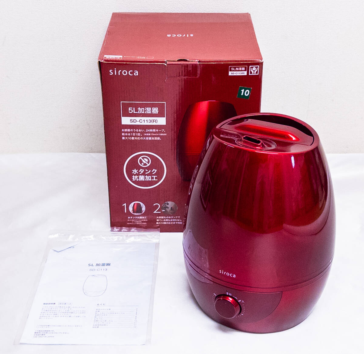 - 3Q売切!税無し◇シロカ 5L超音波式加湿器 SD-C113(R)■~10畳■最大24時間連続加湿■■1112-3