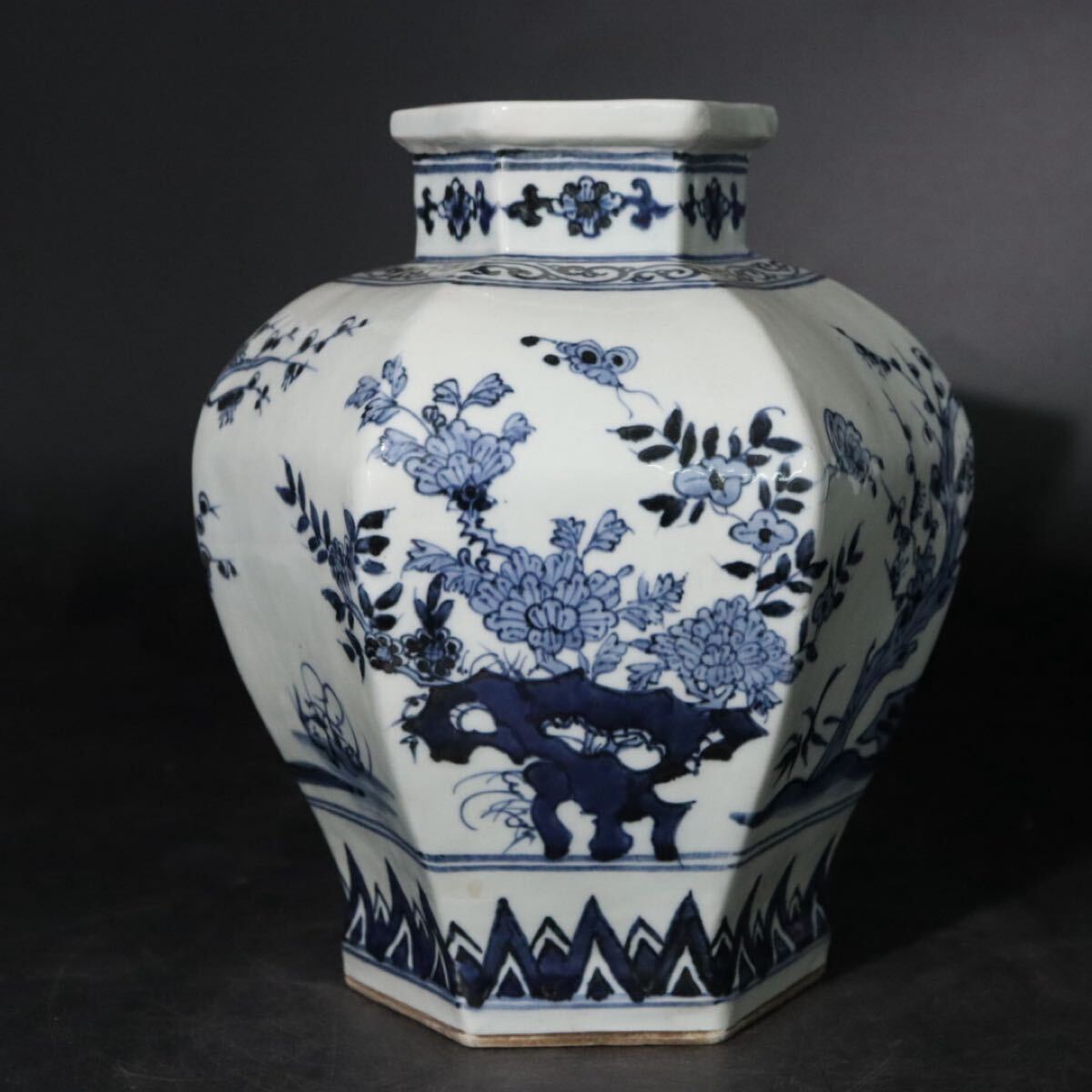 - 染付 草花図 面取 花瓶 / 中国美術 花器 壺 煎茶道具 検索: 新渡 祥瑞 .B1362