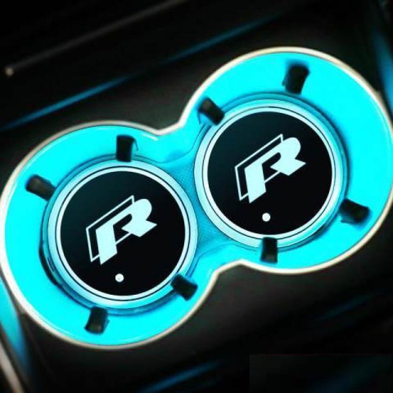 > R フォルクスワーゲン LEDコースター ドリンクホルダー ライトマットパッド 自動点灯消灯 2個セット 車カップホルダーライト USB充電マット