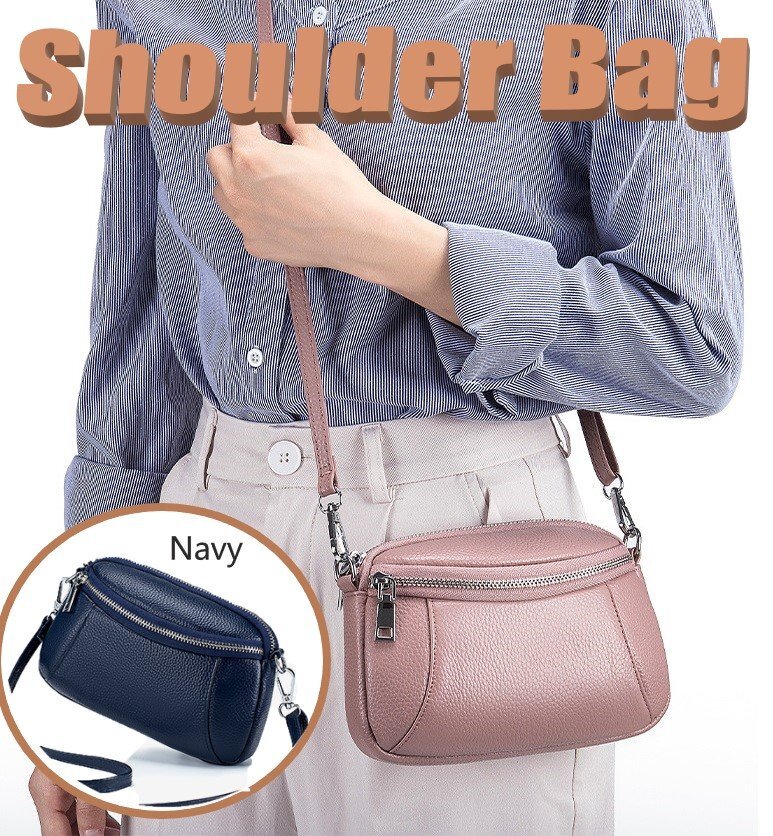 - ショルダーバッグ 牛皮 ネイビー レザー シンプル 小物 スマホ カード 鍵 たばこ など n533