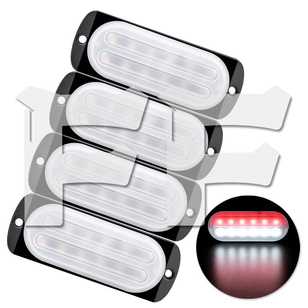 > レッド/ホワイト 多モード 薄型 片側 LEDライト ハザード ストロボ フラッシュ パトロール 大型車 建設機械 トラック ボート 4個