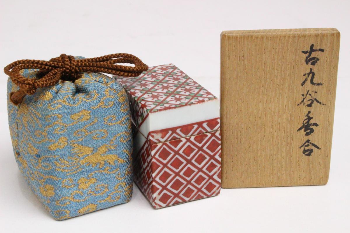 - 「狸庵-RP」 古九谷 香合 九谷焼「専用仕覆・合箱」/ 茶道具 香合 ☆本物保障☆e3o3v