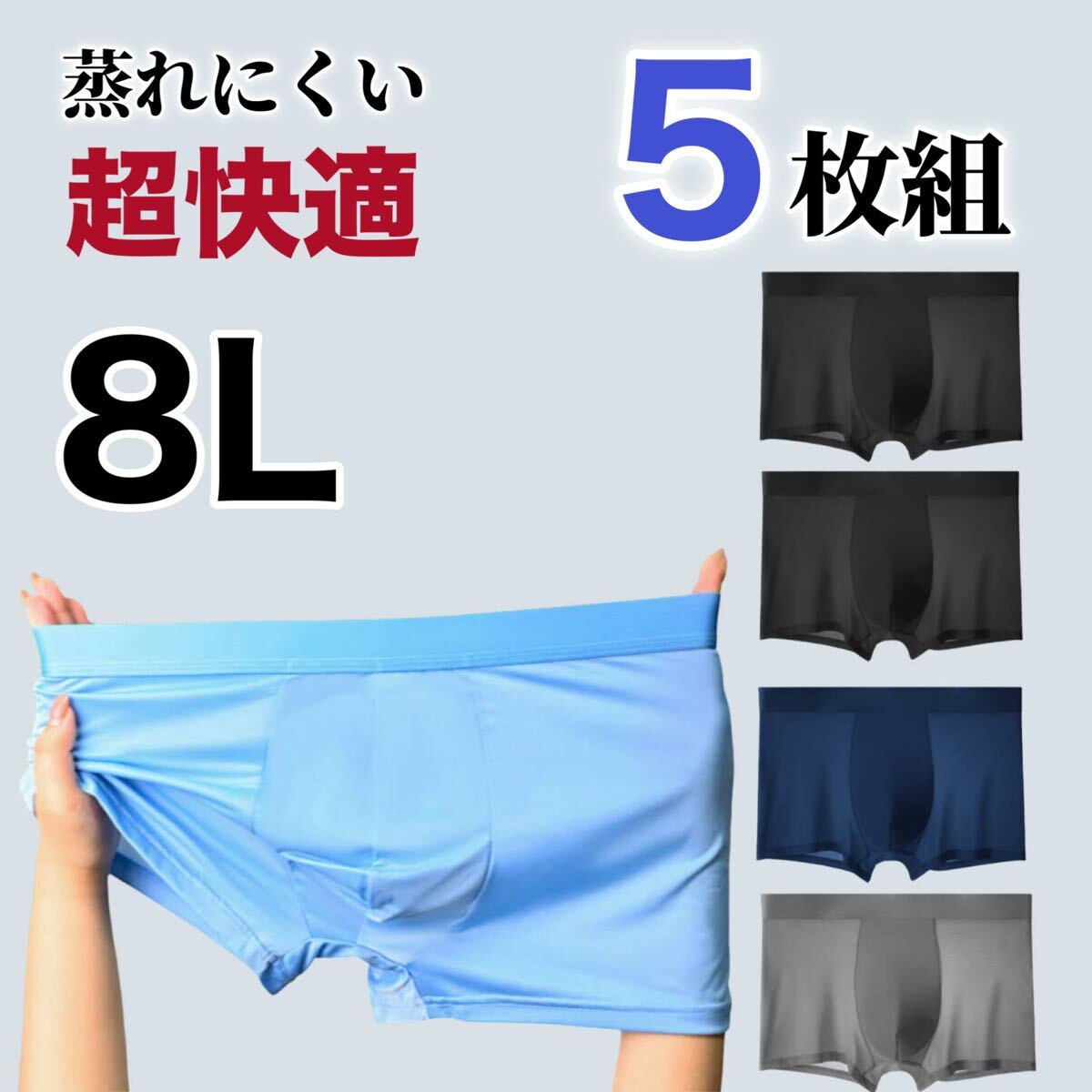 - 8L 7XL 5枚セット 下着 ブラック ブルー 黒 青 水色 ネイビー 紺色 無地 灰色 通気性 男性 抗菌 アウトドア グレー ボクサーパンツ メンズ