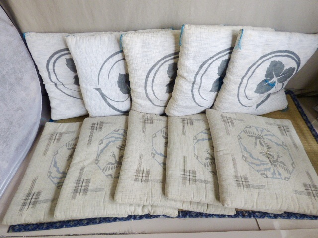 - む482○夏用の座布団10枚●2種類/鳳凰/植物/白系/お座敷/和室