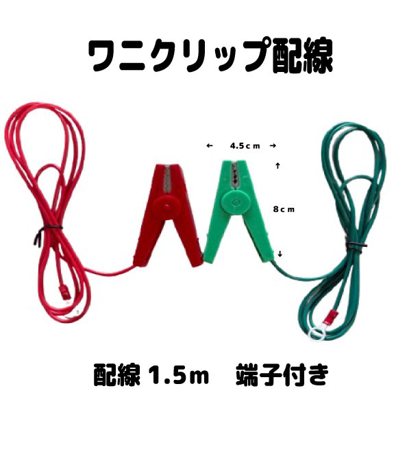 - 大型ワニクリップ配線 2個セット 配線1.5m 端子付き