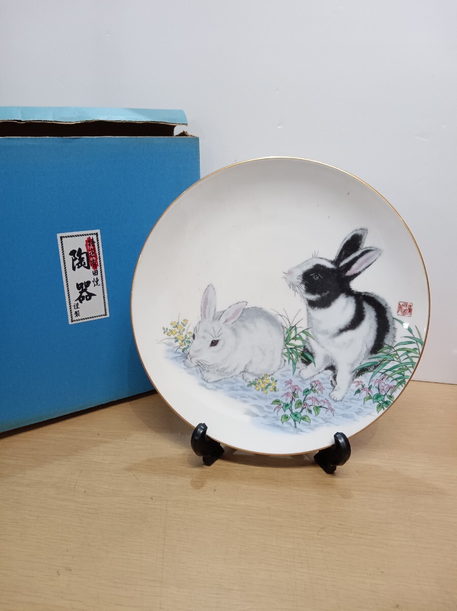 - 特選 有田焼 飾り皿 うさぎ 兎 和食器 保管品 23cm