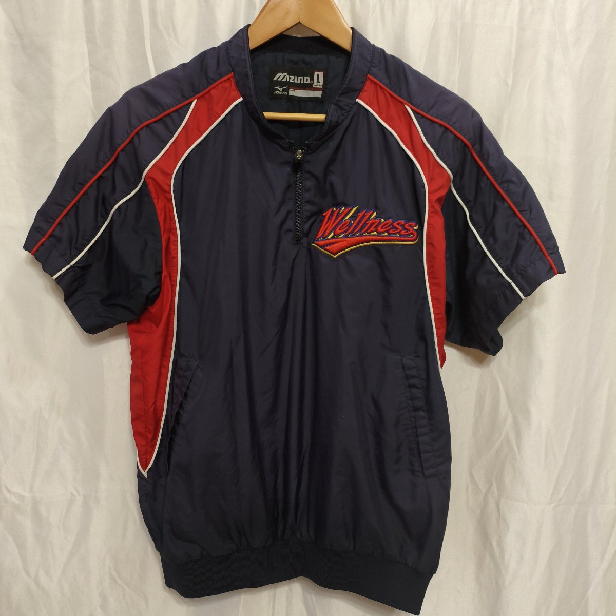 - 高校野球◆東京都 日本ウェルネス高等学校 野球部 ミズノ製 半袖 ハーフジップジャケット( 紺)・実使用・現状渡し品◆USED E