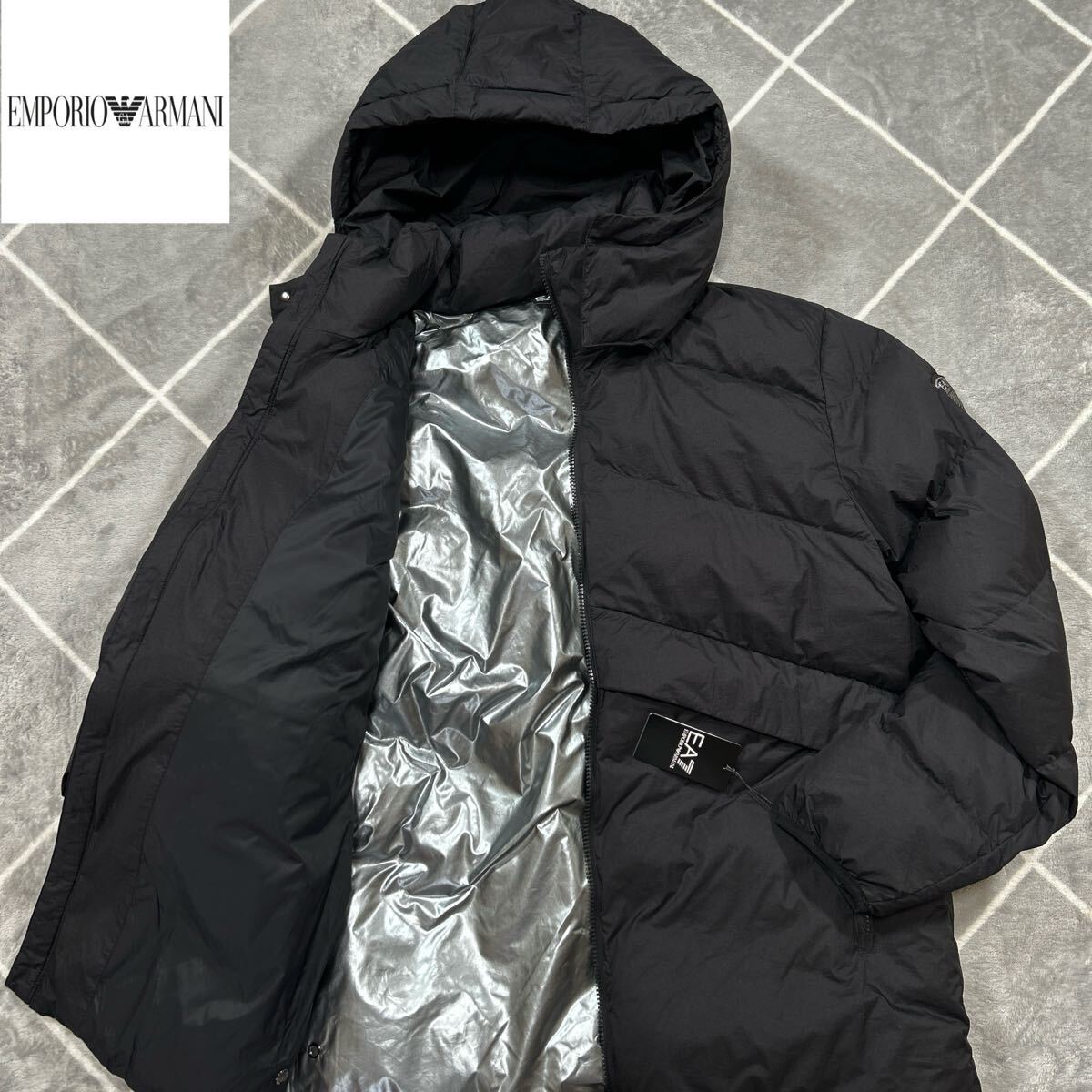 > 【新品XXL】タグ付き 未使用 EMPORIO ARMANI エンポリオアルマーニ ダウンジャケット XXLsize 黒 極暖【抜群の保温性】超激レア 袖ロゴ