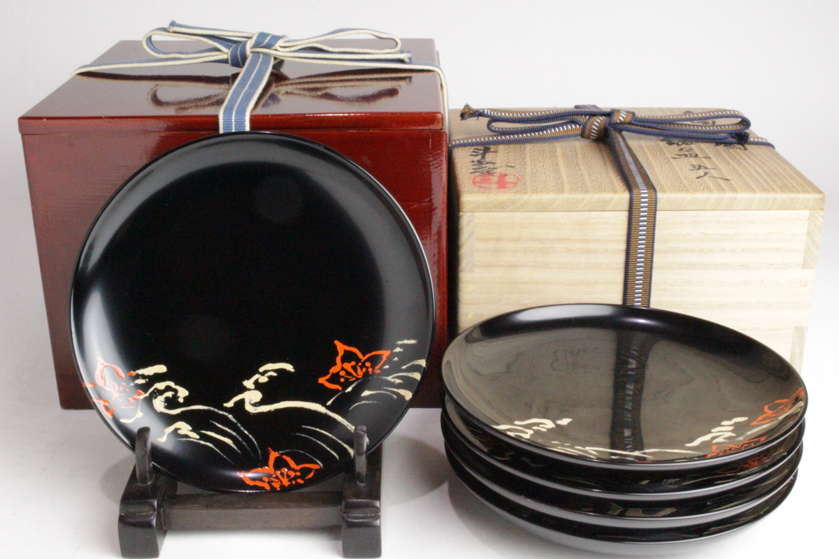 荒川豊蔵 作 竜田川の図 銘々皿 5客