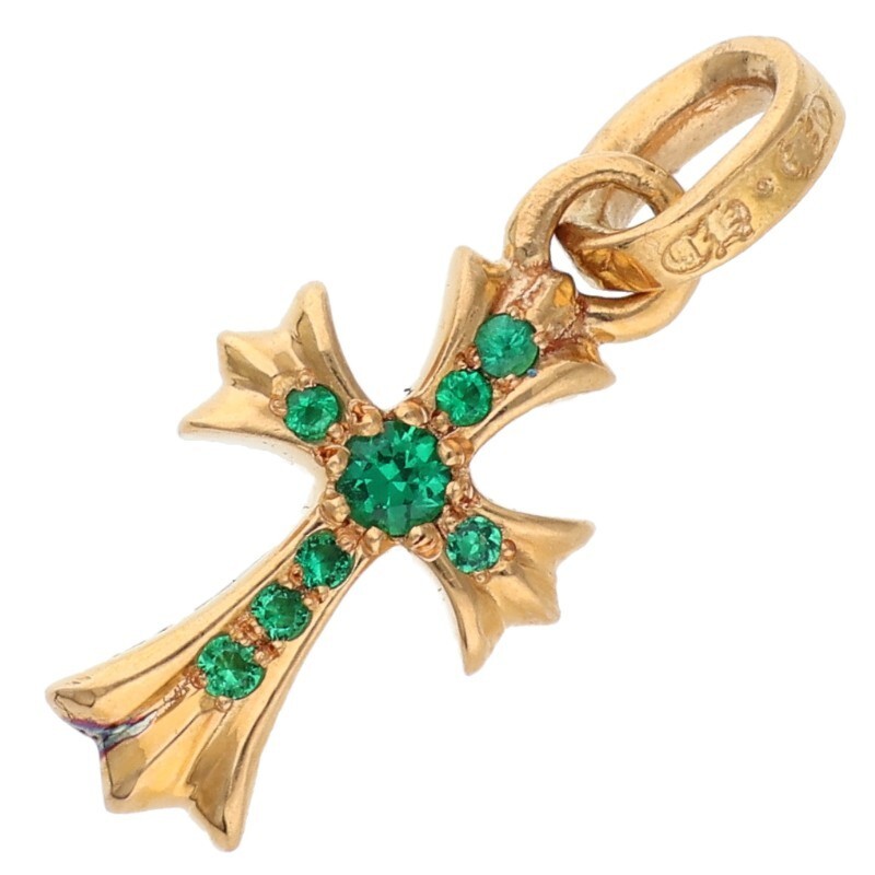 > クロムハーツ 22K CRS BBYFAT P EMRLD ベイビーファット PAVEエメラルド ゴールドネックレストップ 中古 SS07