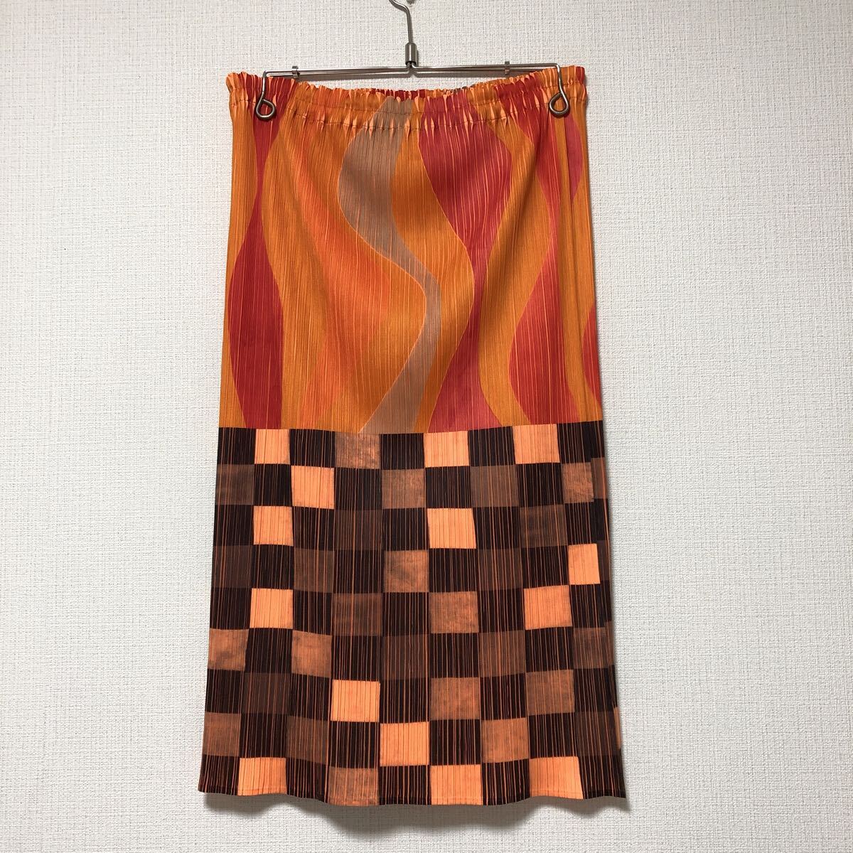 - (k) PLEATS PLEASE プリーツプリーズ ISSEY MIYAKE イッセイミヤケ 総柄スカート レディース 3 オレンジ 日本製
