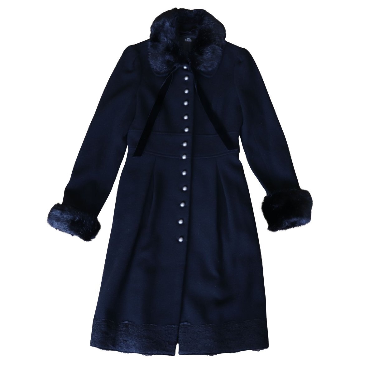 - 12748-O-100-T L'EST ROSE レストローズ コート ボタンアップ ロング丈 襟/袖ファー付き ブラック サイズ 2 レディース