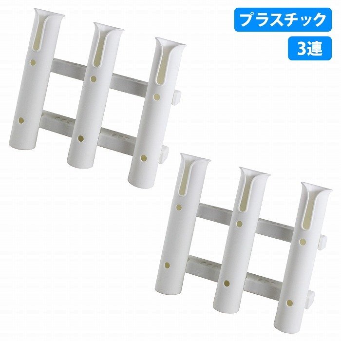 - [3連 2個セット] ロッド ホルダー 竿 立て 置き 入れ 釣り フィッシング スタンド ネジ付 固定 船 漁船 ボート 白 ホワイト