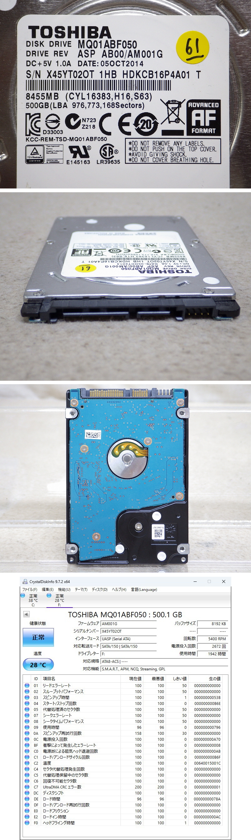 - Kネま2168 東芝/TOSHIBA 2.5インチ SATA 内蔵HDD 500GB MQ01ABF050 パソコン周辺機器 PCパーツ ハードディスク