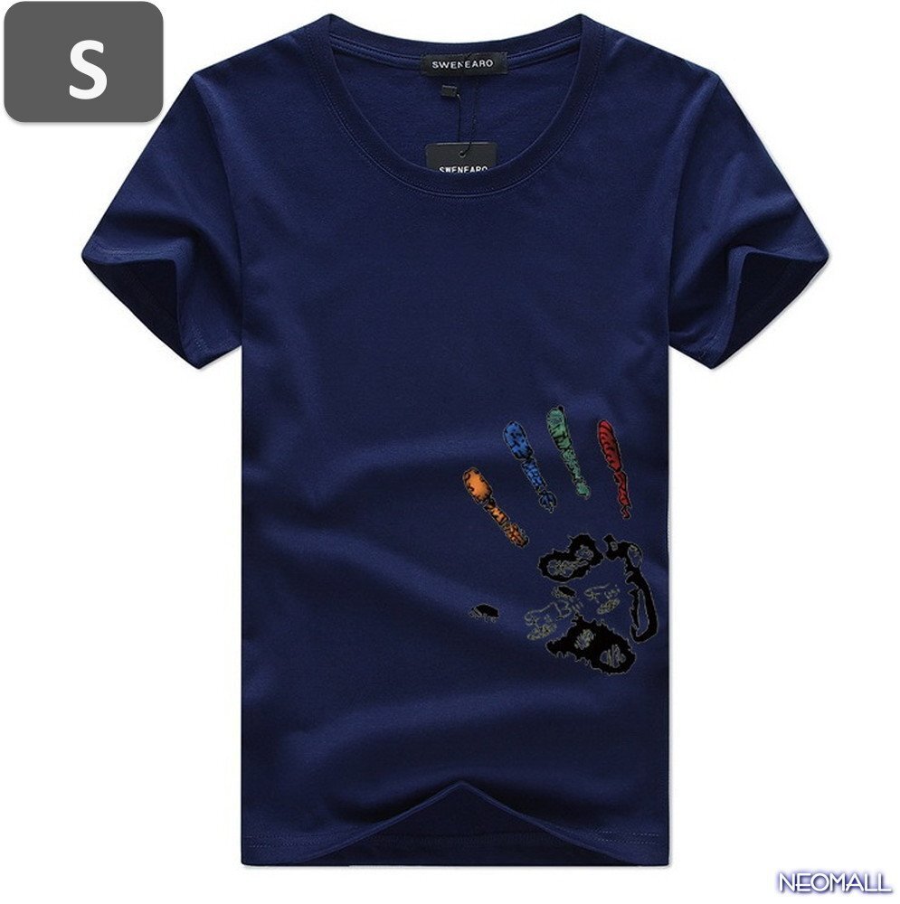 > 夏の定番 ☆ 丸首 半袖 Tシャツ【457】 ネイビー Sサイズ トップス シャツ シンプル イラスト デザイン 春夏
