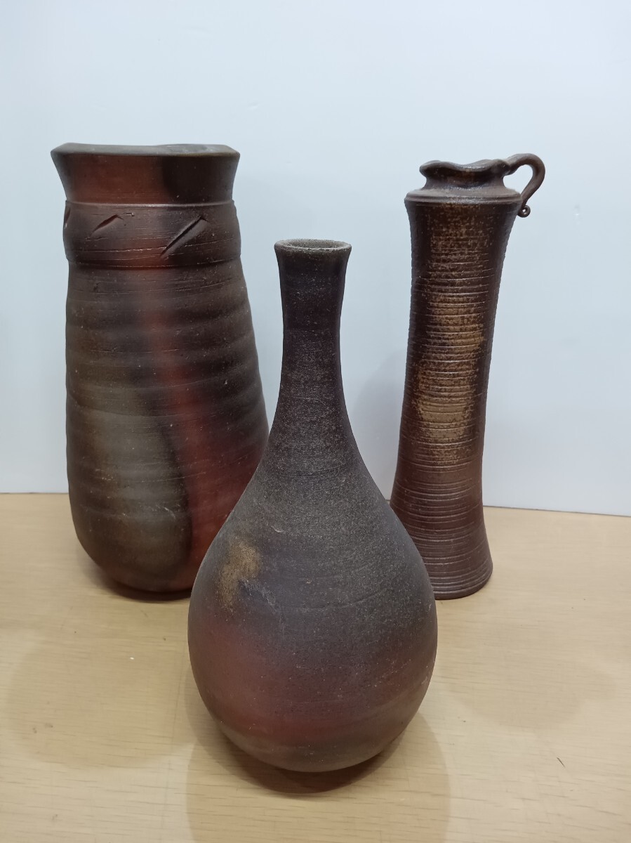 - 備前焼 花瓶 3点セット 備前焼 高さ26cm 25cm 22cm 花器 中古保管品