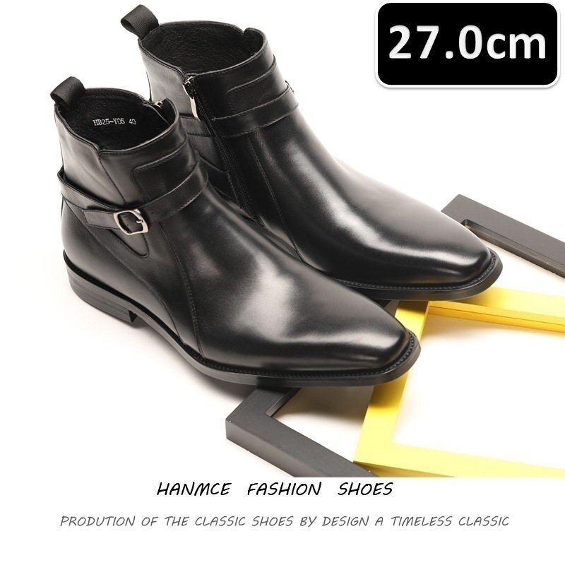 > メンズ ビジネス レザー ブーツ ブラック サイズ 27.0cm 革靴 靴 カジュアル 屈曲性 通勤 軽量 柔らかい 新品 【220】